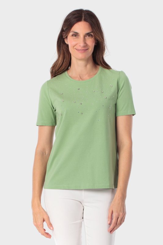 Değerli taşlarla süslü sade tişört