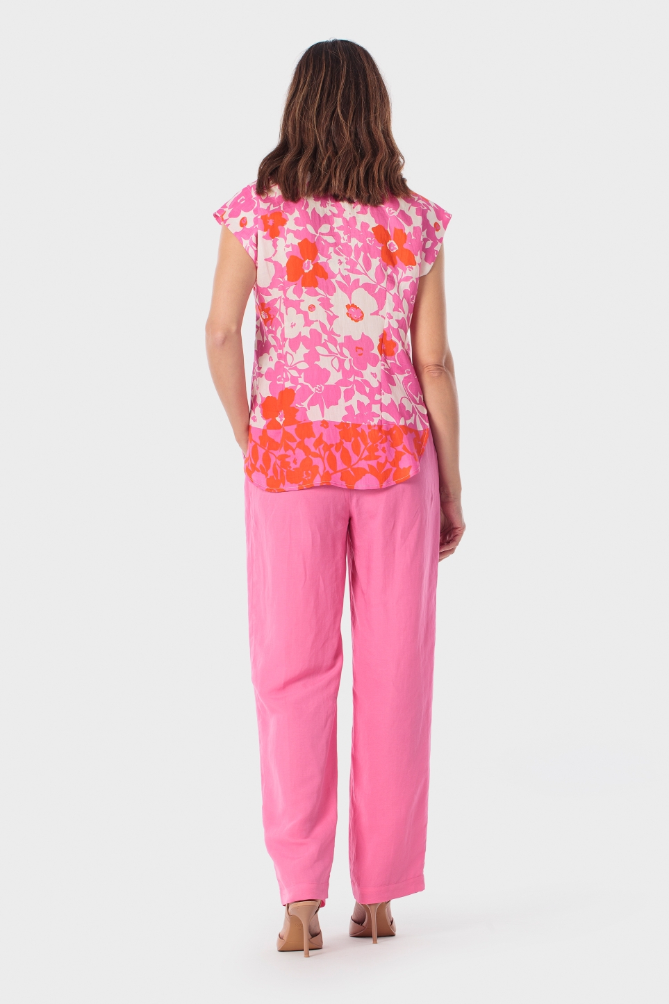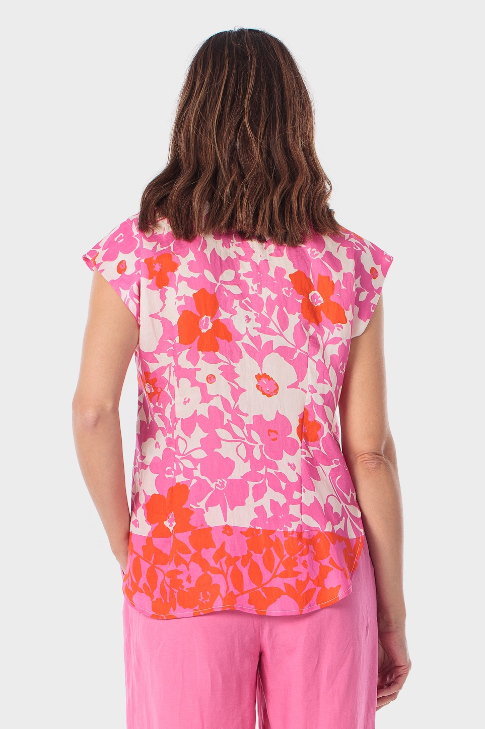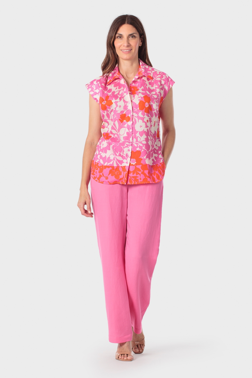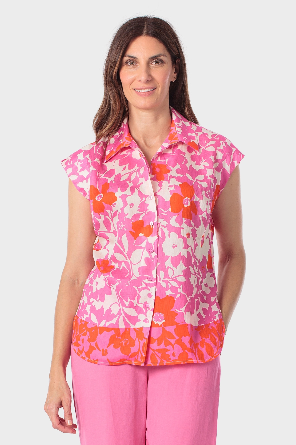 Çiçek desenli gömlek, kısa kollu, önü düğmeli.