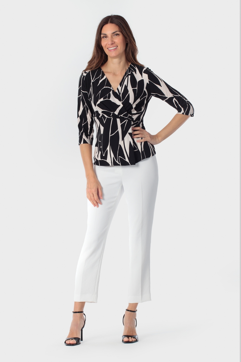 Baskılı tişört, çapraz askılı, V yaka, 3/4 kollu.