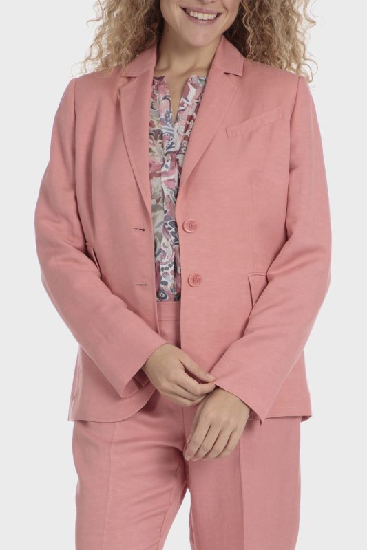 Japon kumaşından üretilmiş beyaz renkli blazer ceket, iki cepli, 3/4 uzunlukta kollu ve açık manşetli, önden düğmeli kapanışlı.