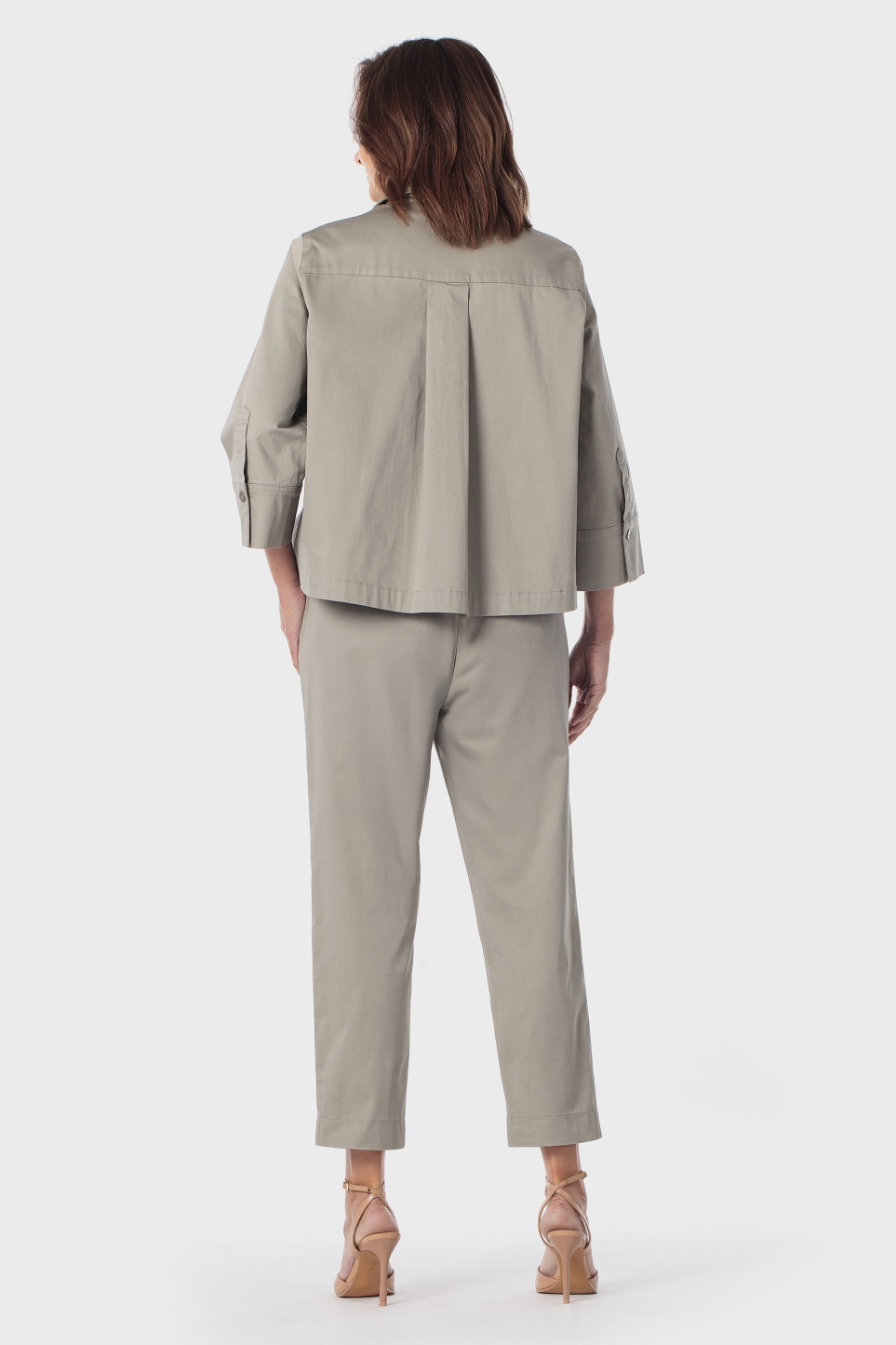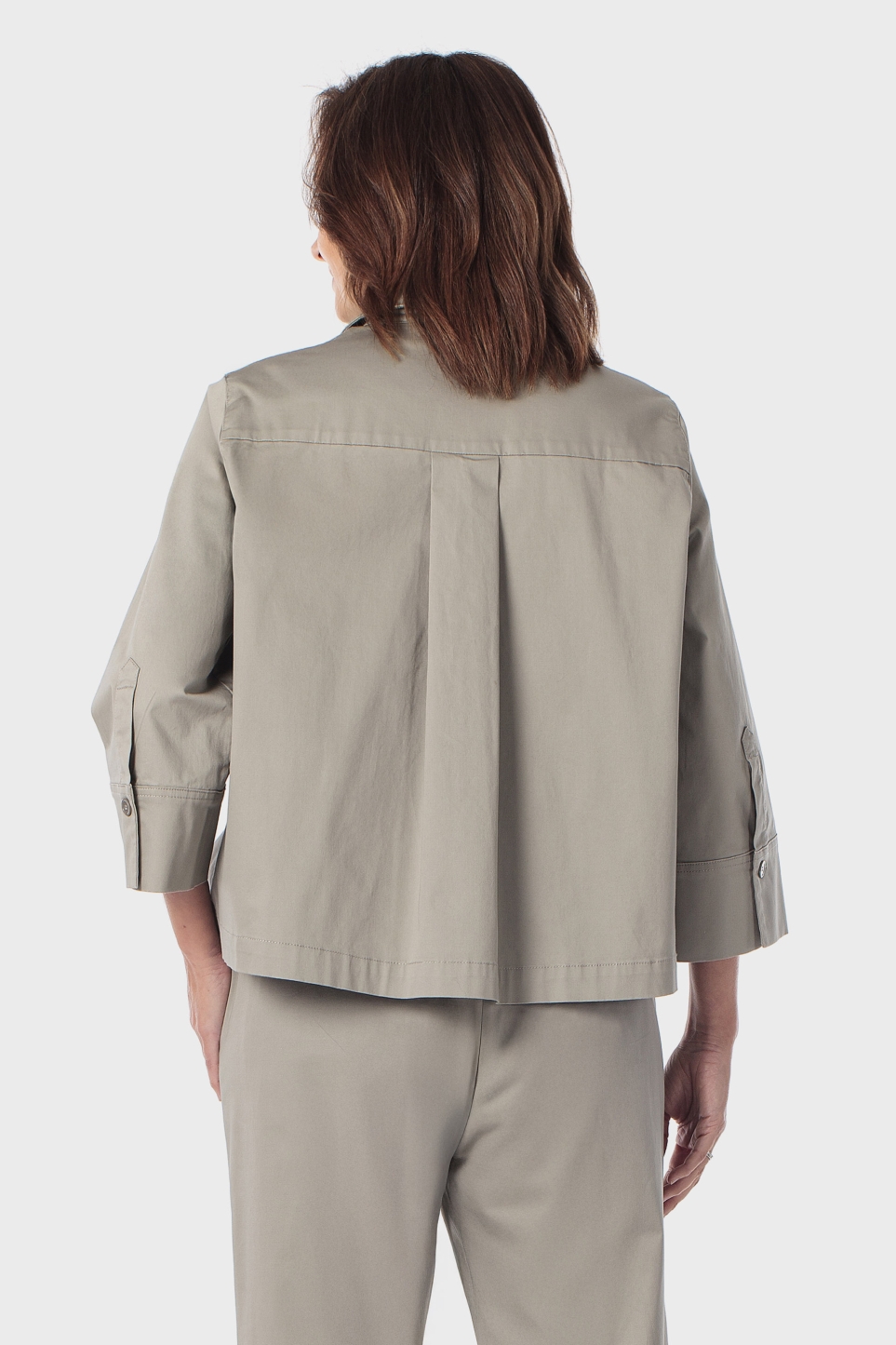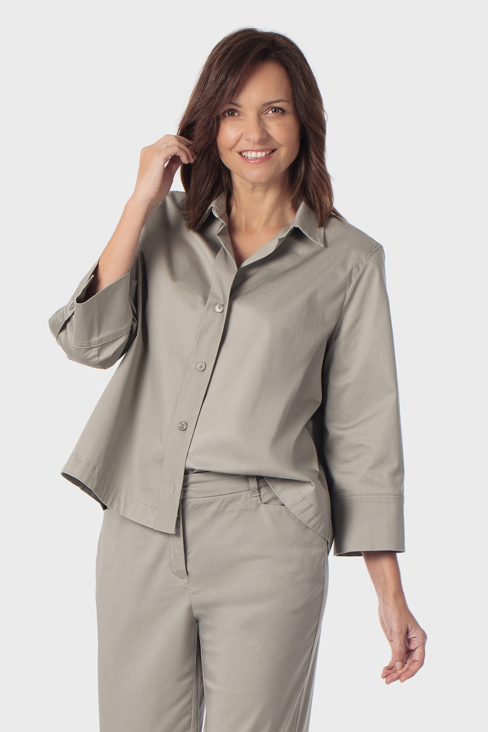 Bol kesimli, yeşil renkli, 3/4 kollu gömlek.