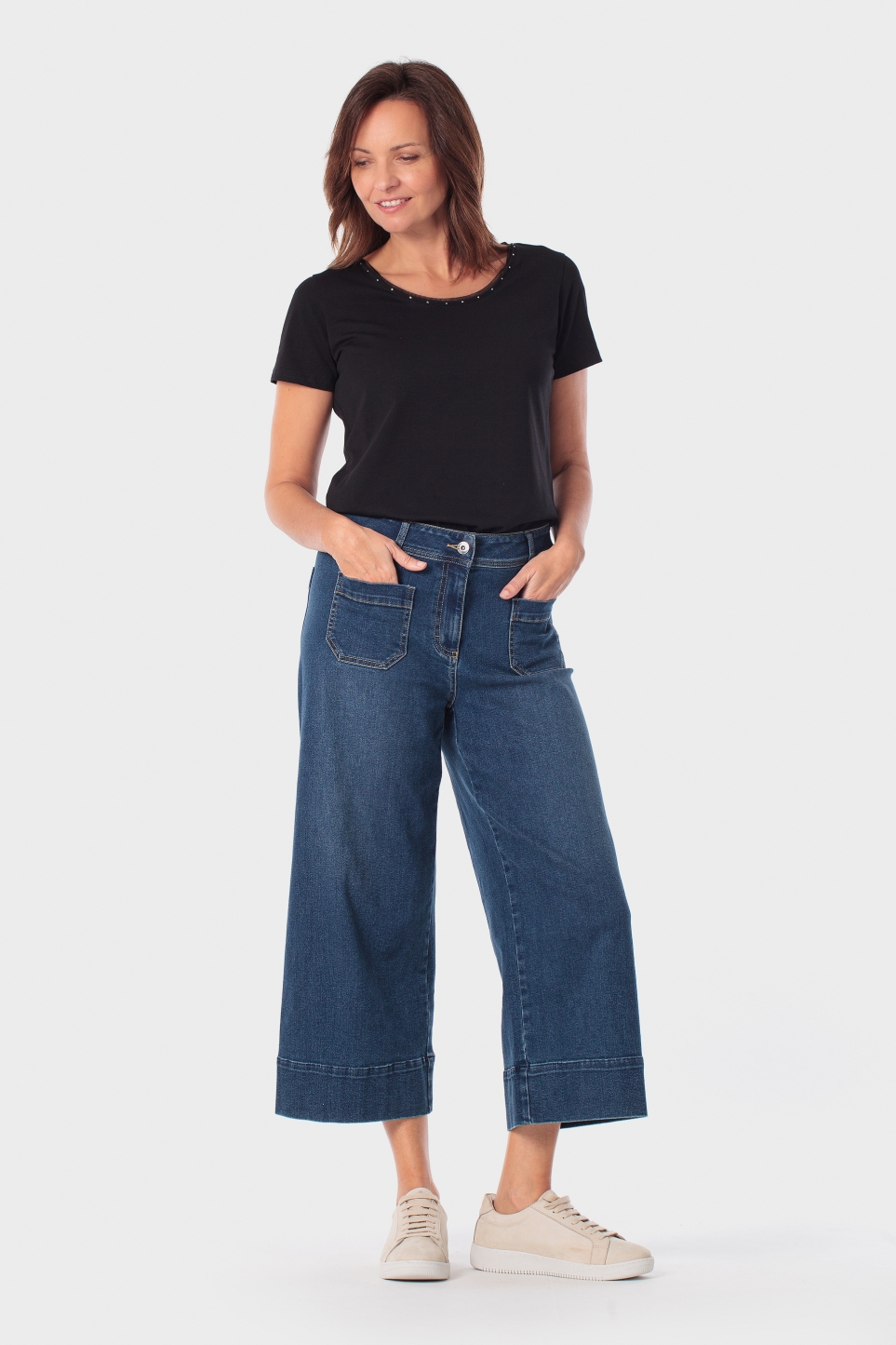 Sade tişört, değerli taş detayları, kısa kollu. Çeşitli renklerde mevcuttur.