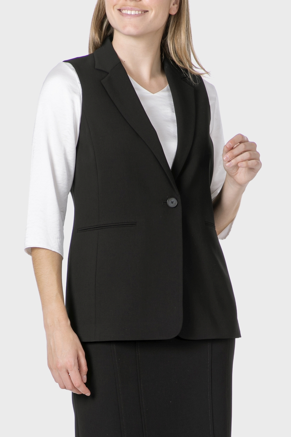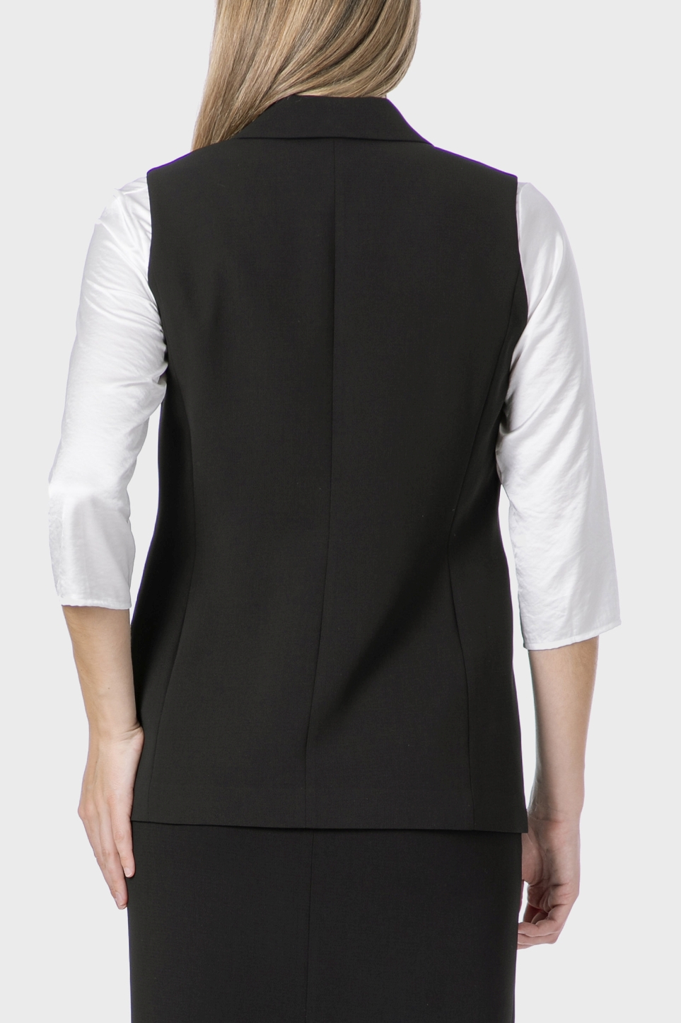 Krep yelek, krep, iki adet sahte cep, yaka, önden düğmeli.