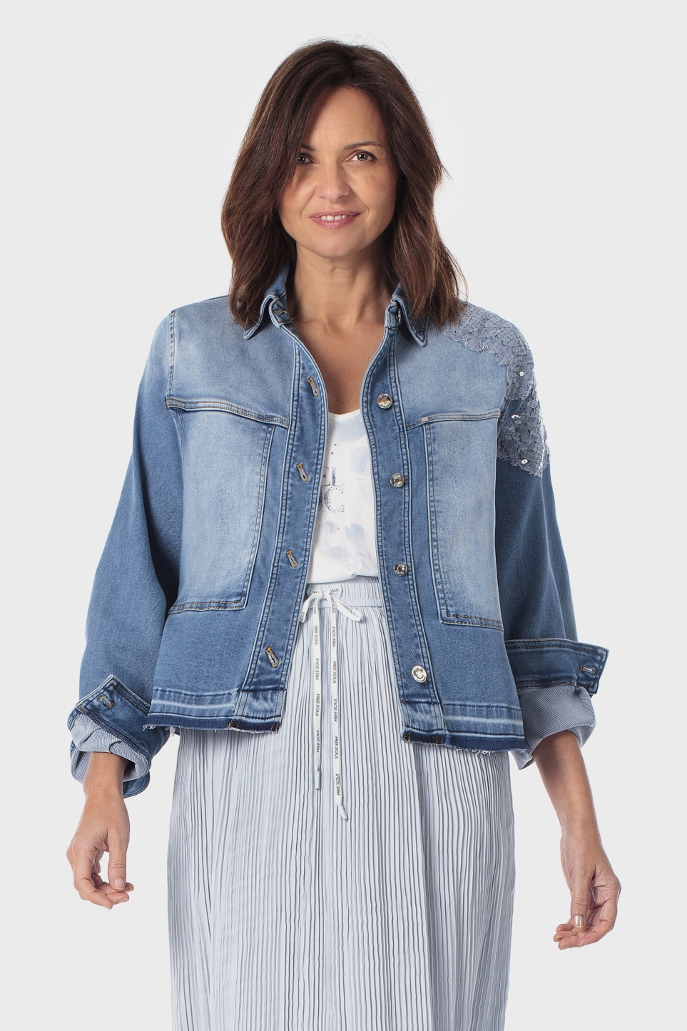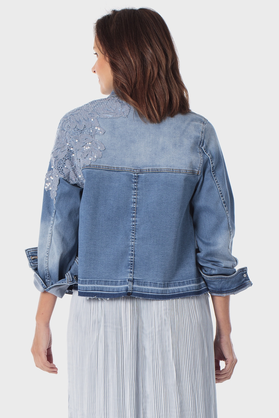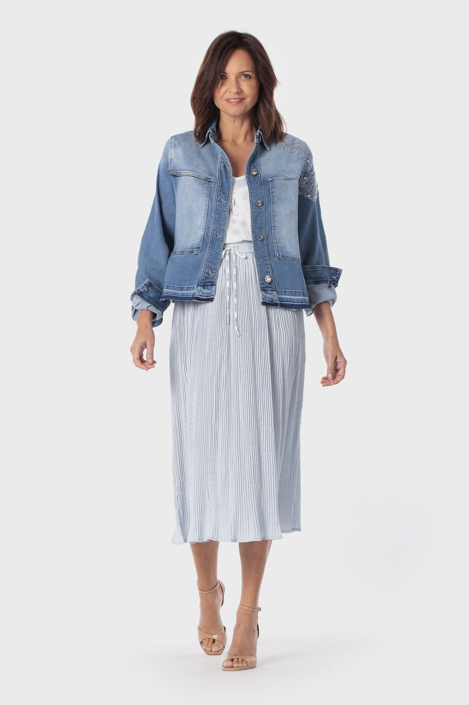Kot ceket, payet detaylı, iki cepli, önden düğmeli kapanış.